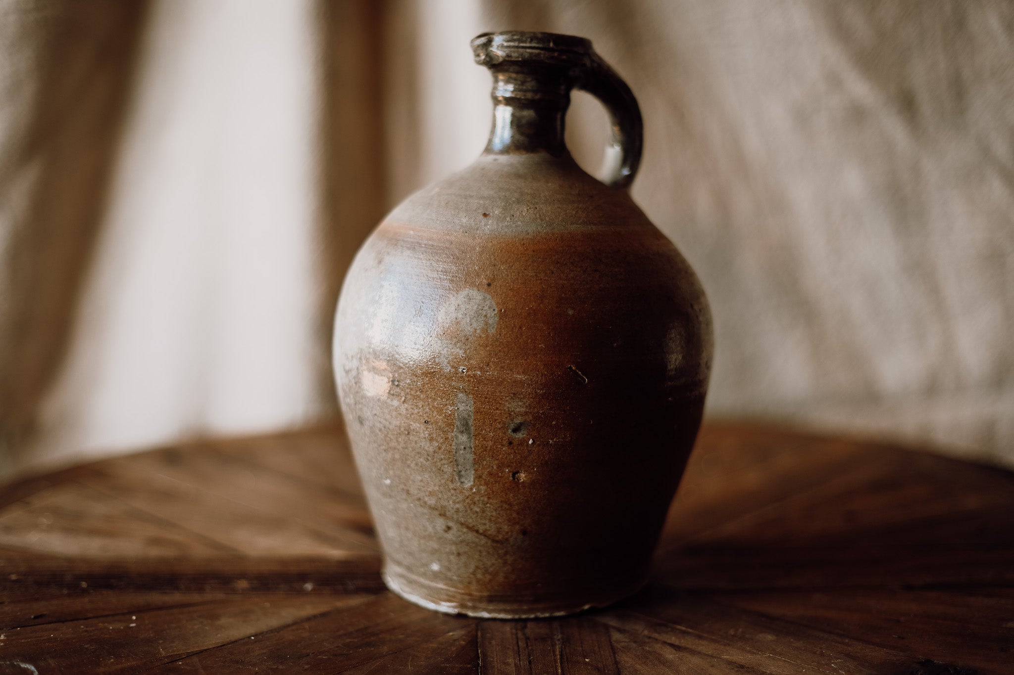 This striking jug is a versatile piece that combines aesthetic appeal with practical use. Its natural glaze effects and timeless design make it a standout addition to any space.