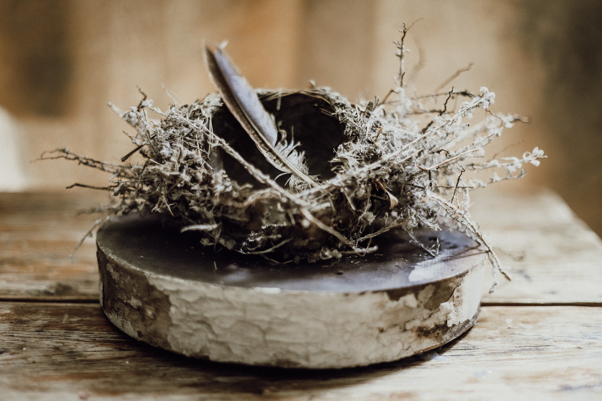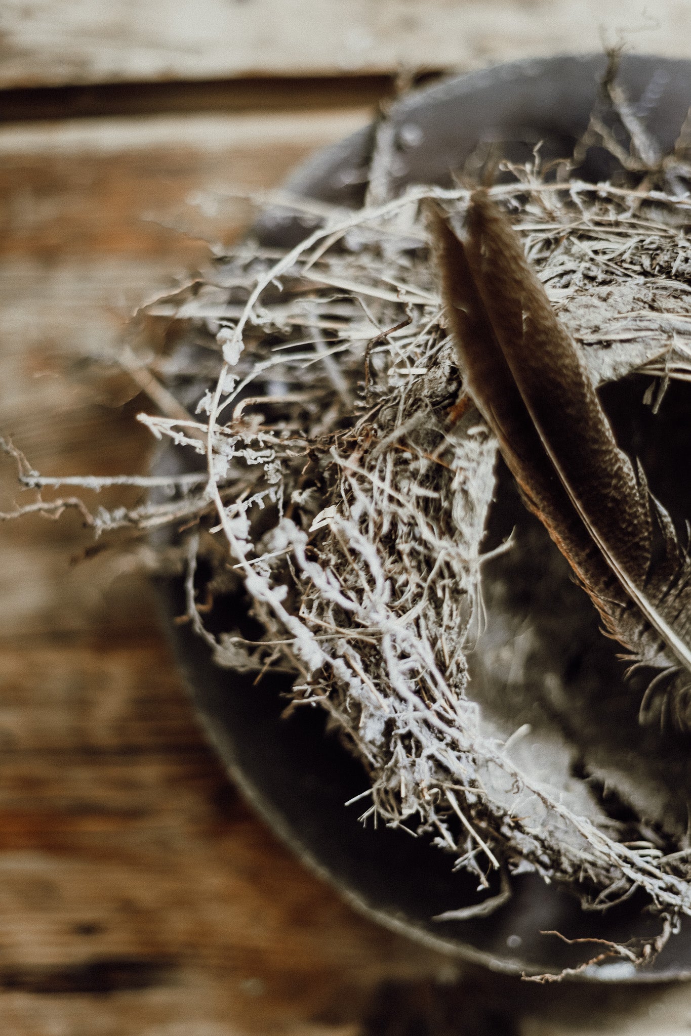 10" x 2" Includes the beautiful bird nest harvested from the Hydrangea tree in my yard and full of lavender.