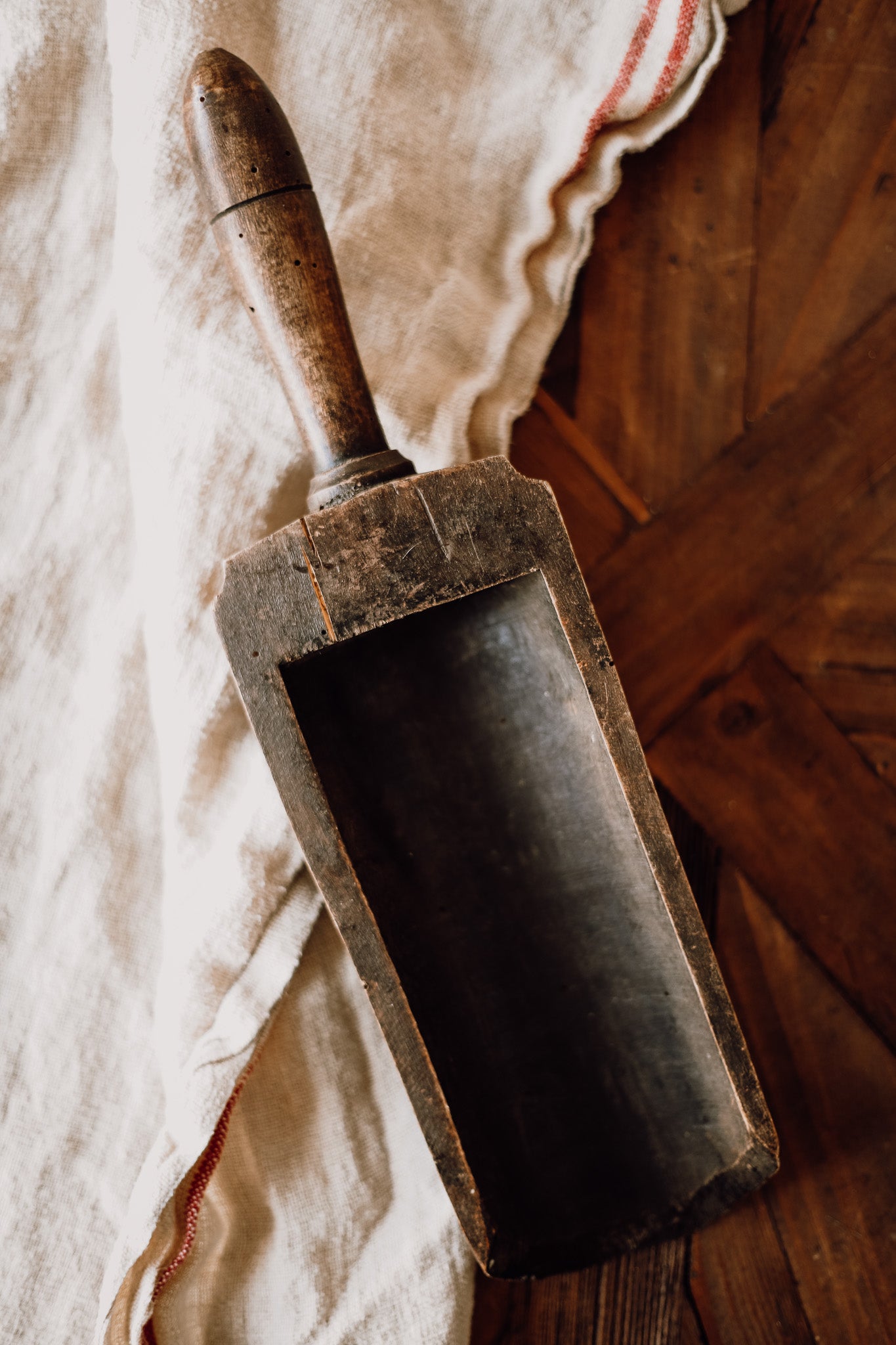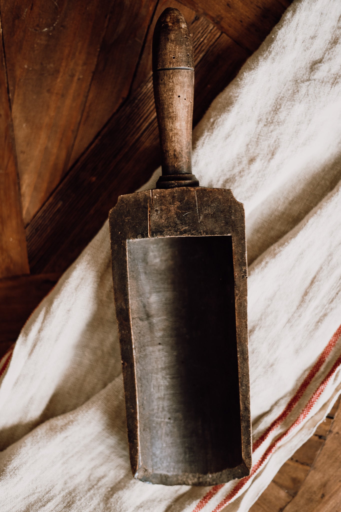Embrace the charm of rustic elegance with this stunning antique French wooden scoop. Crafted from high-quality wood, this piece showcases intricate craftsmanship and a timeless design that reflects its rich history. Perfect for decorative display or practical use in your kitchen or laundry.