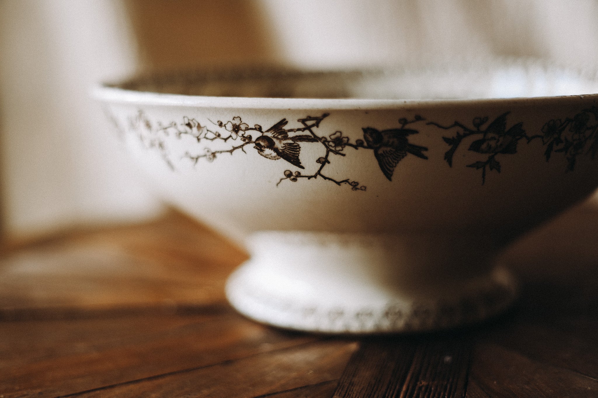 Add a touch of rustic elegance to your dining table with this exquisite antique French saladier. Featuring a beautifully detailed brown bird transfer design, this functional piece combines historic charm with practicality, making it perfect for serving salads, fruits, or as a decorative centerpiece.
