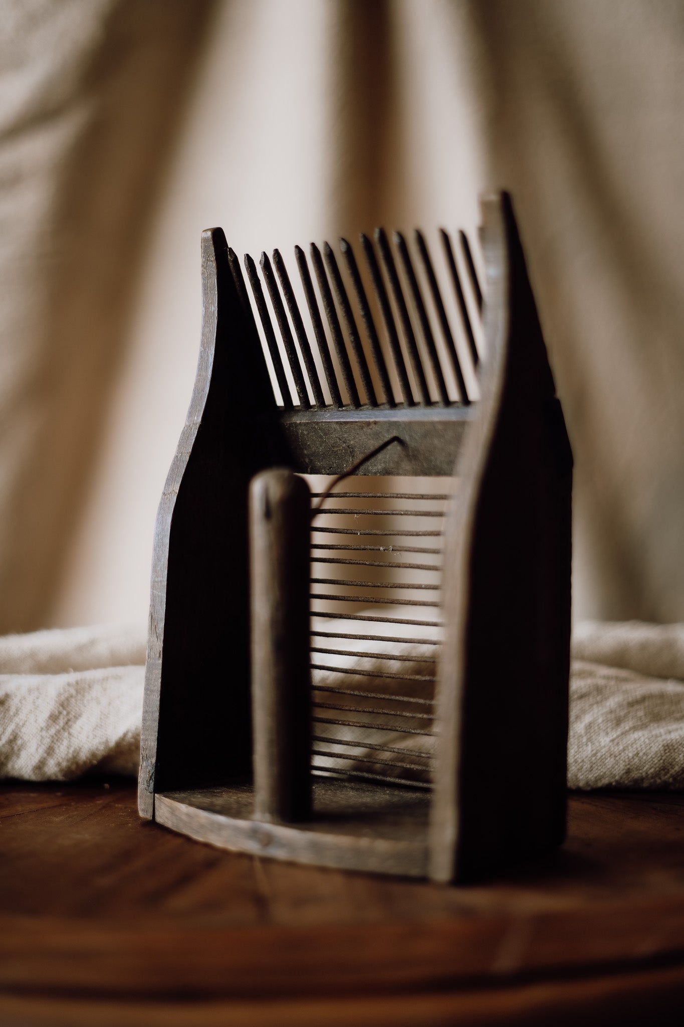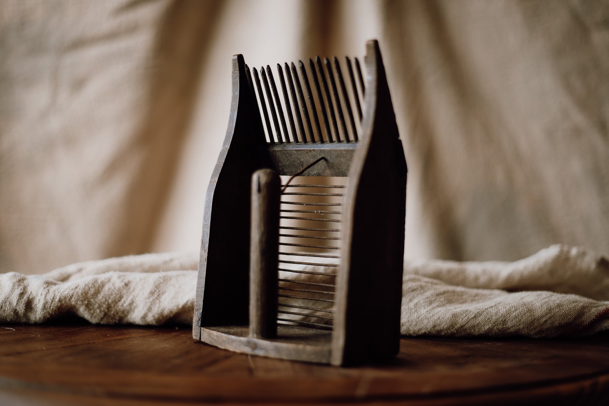 Ideal for display in a garden shed, a vintage collection, or as a decorative accent, this old French berry picker exudes nostalgic appeal and craftsmanship. Its weathered patina and timeless design serve as a beautiful reminder of traditional berry harvesting methods.