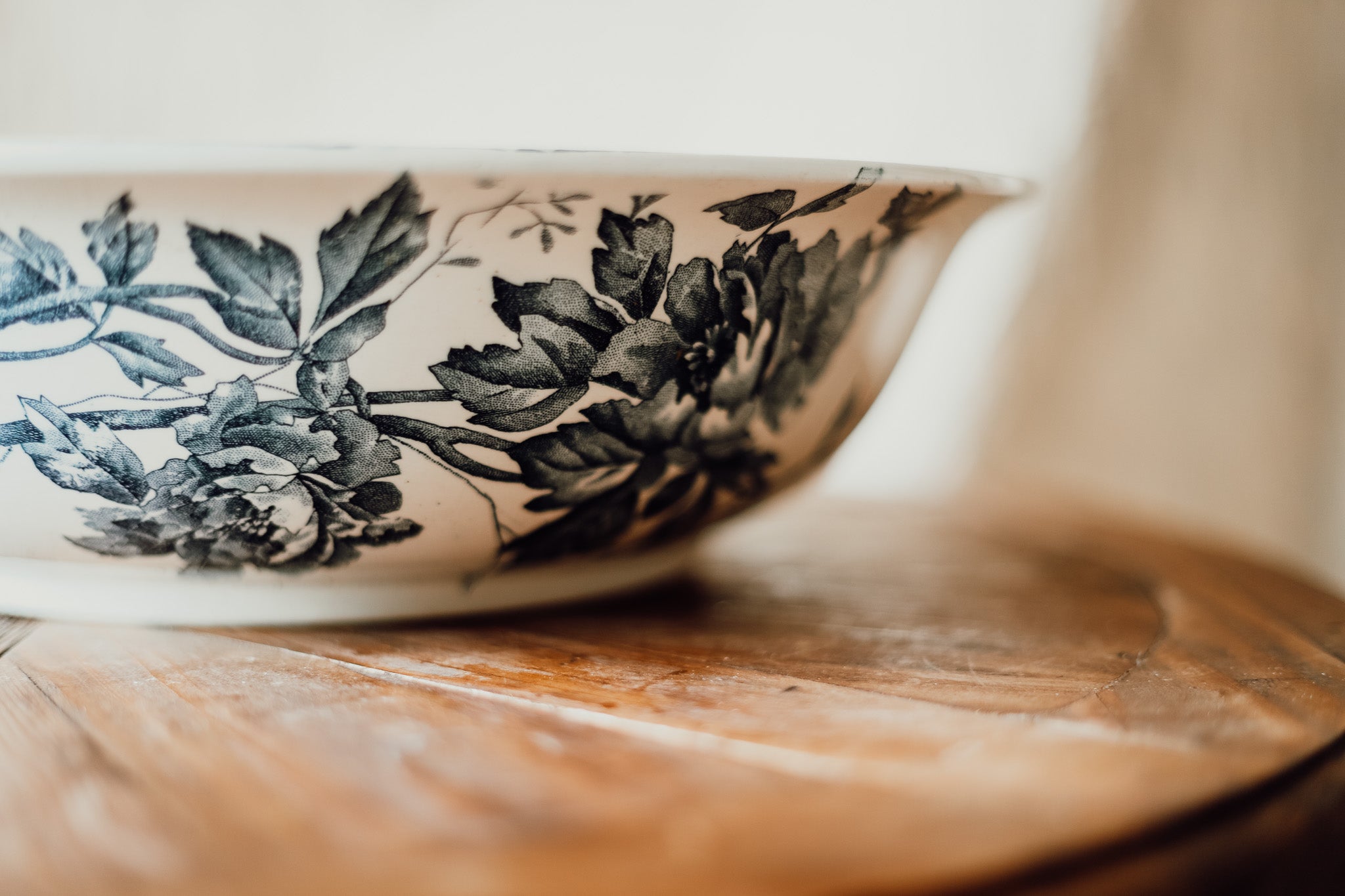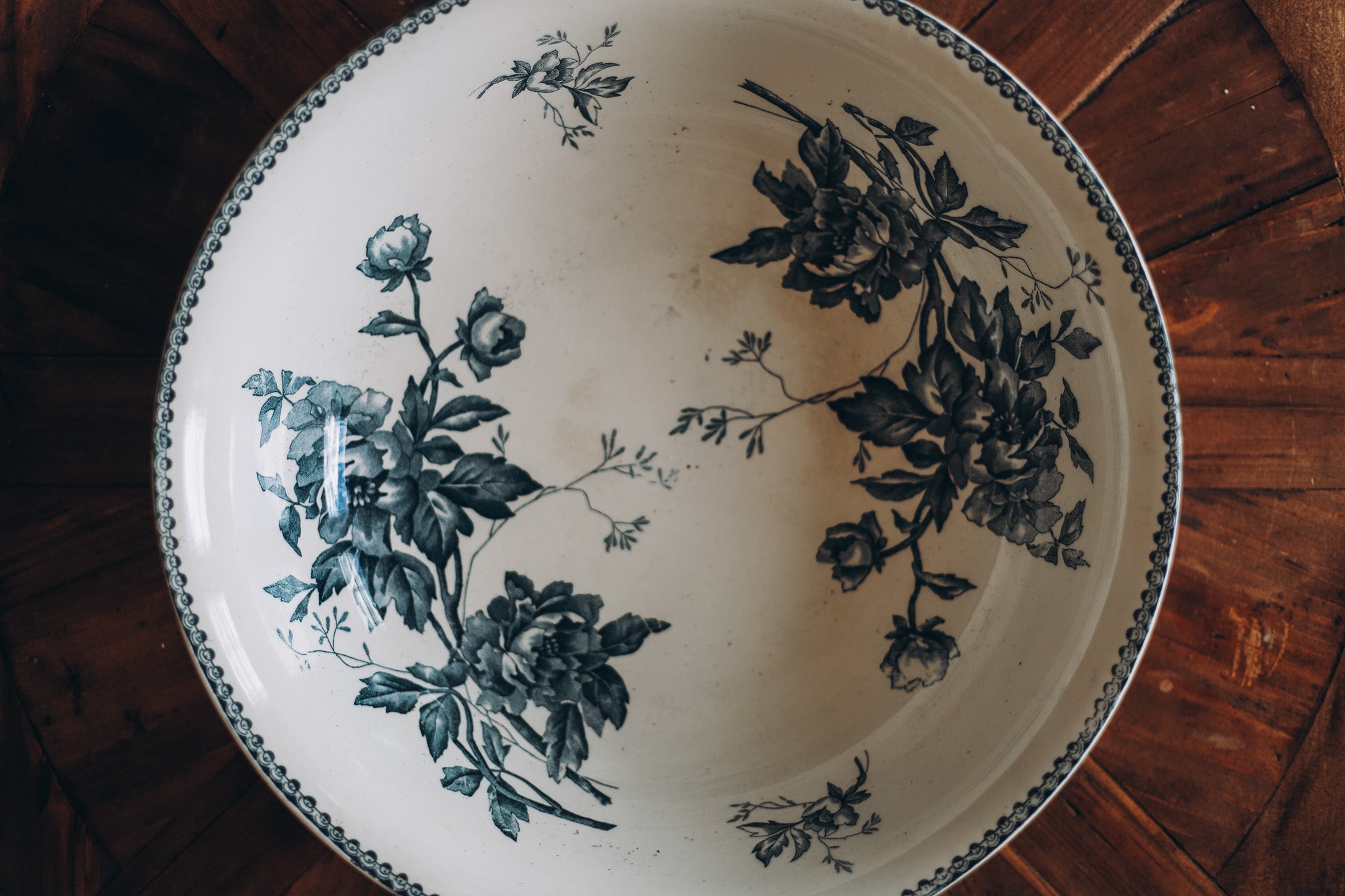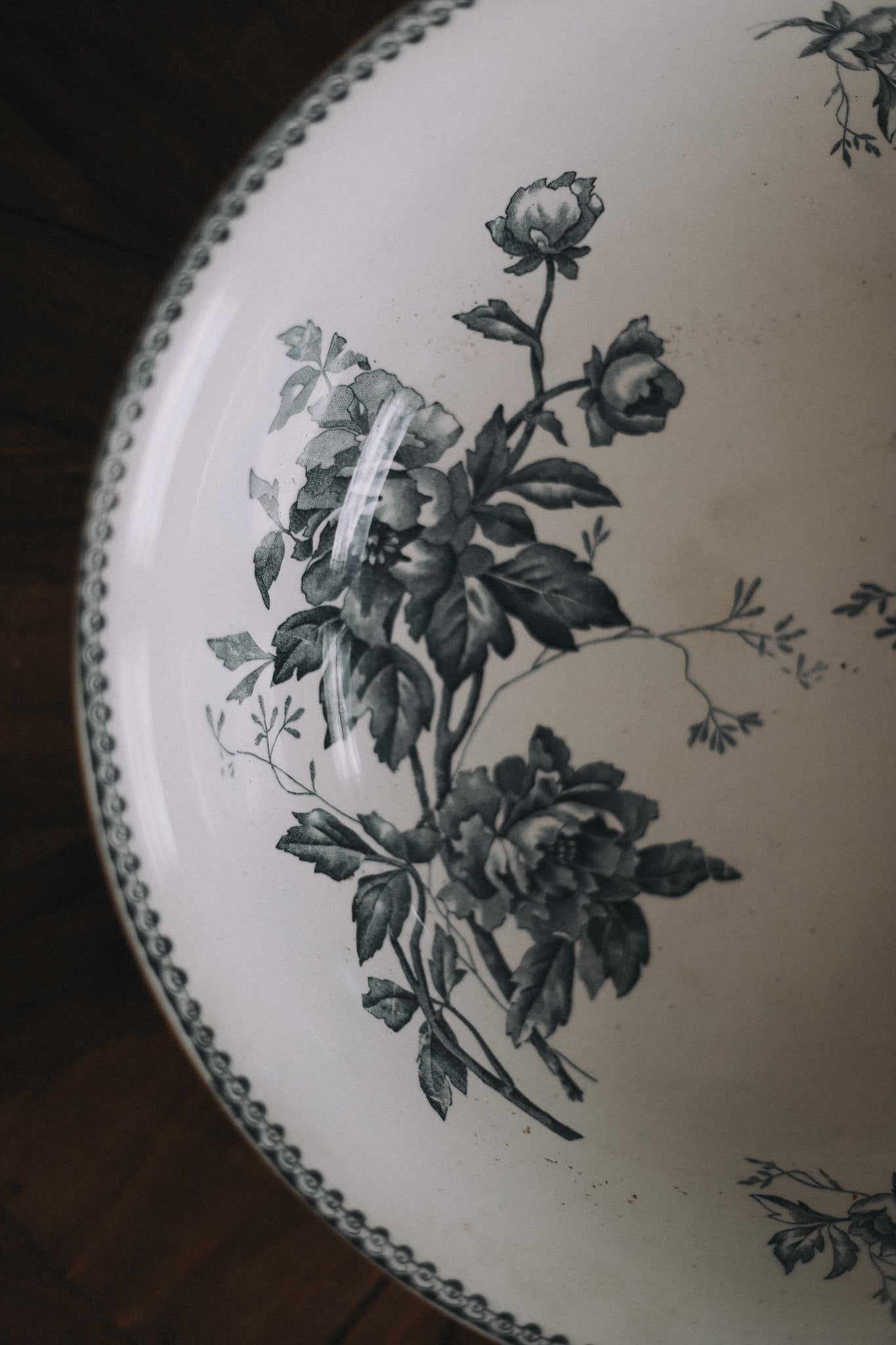 Enhance your dining experience with this exquisite French saladier, beautifully adorned with a delicate blue floral transfer design. This charming piece, crafted with care, captures the essence of classic French tableware and is perfect for serving salads, fruits, or presenting as a decorative accent.